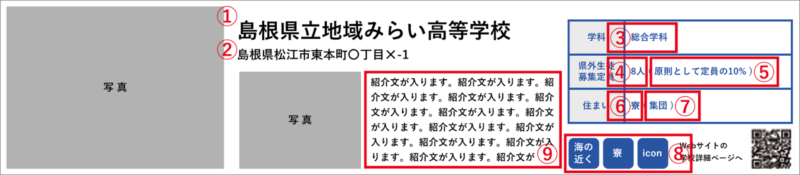 - 件名:学校カタログ掲載情報(○○県(道)立○○高等学校)
